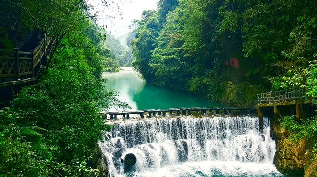 2、常规游览线路:游客服务中心 → 检票长廊 → 垭口 → 云罡栈道 → 罡步天梯 → 步云台 → 阿打集散中心 → 千寻瀑 → 浣云桥 → 兰索桥 → 桃花渡 → 一线天 → 五尺门 → 望月桥 → 金龙渊 → 岔溪渡口 → 岔溪口观景台 → 傩愿洞 → 打一杵 → 杜宇楼