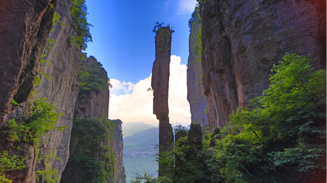 下行:可选择步行下山,或乘坐下行电梯费用自理30元/人,下山电梯省力省时,沿途观峡谷奇景。